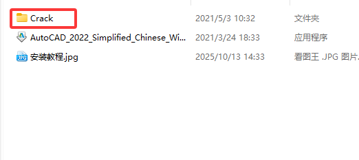 第十二步:打开之前解压后的安装包【AutoCAD_2022】找到Crack文件夹。