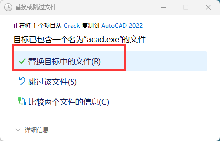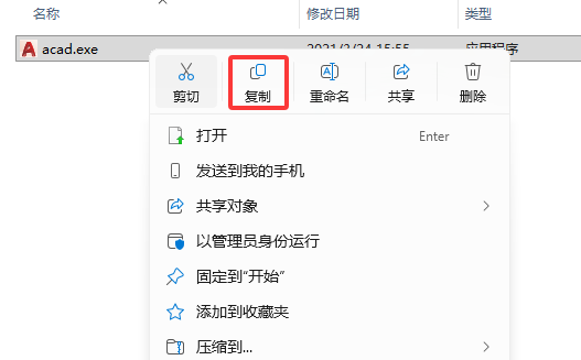 第十三步:双击Crack打开选择acad.exe【复制】。