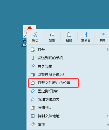 第十四步:鼠标右击桌面上【AutoCAD 2022 – 简体中文 (Simplified Chinese)】图标,选择【打开文件所在的位置】。