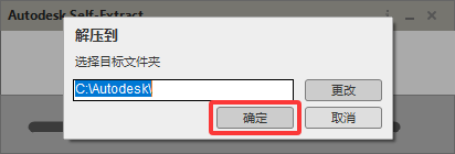 第四步:点击【确定】(默认解压在C盘,可点击更改更换解压路径,软件安装完成后可删除此文件夹)。